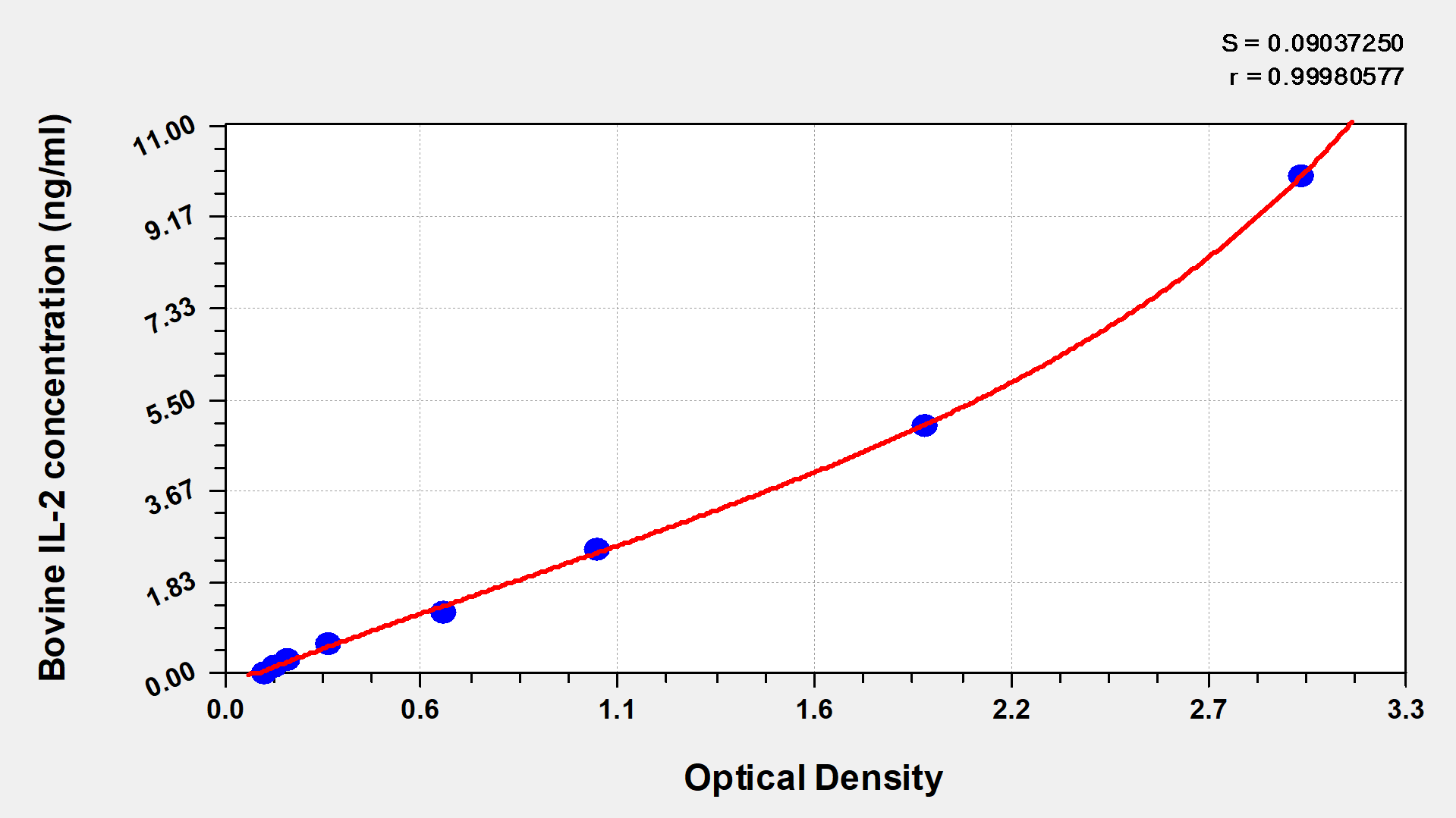 To assess the linearity of the assay, samples were spiked with high concentrations of bovine IL-2 in various matrices and diluted with the Sample Diluent to produce samples with values within the dynamic range of the assay.