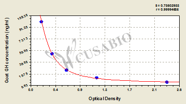 To assess the linearity of the assay, samples were spiked with high concentrations of goat GH in various matrices and diluted with the Sample Diluent to produce samples with values within the dynamic range of the assay. Sample Serum(n=4) 1:1 Average % 84 Range % 80-88 1:2 Average % 87 Range % 84-90 1:4 Average % 95 Range % 91-99 1:8 Average % 92 Range % 88-97 -