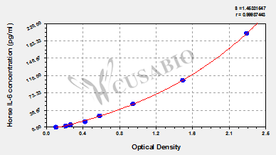 To assess the linearity of the assay, samples were spiked with high concentrations of horse IL-6 in various matrices and diluted with the Sample Diluent to produce samples with values within the dynamic range of the assay. Sample Serum(n=4) 1:1 Average % 92 Range % 84-98 1:2 Average % 90 Range % 85-95 1:4 Average % 96 Range % 92-101 1:8 Average % 104 Range % 96-108 -