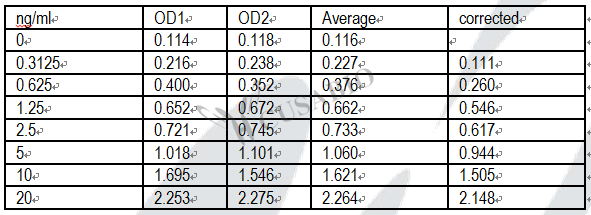 檢測范圍:0.3125 ng/mL-20 ng/mL