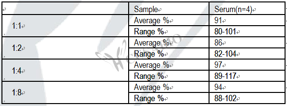 Three samples of known concentration were tested twenty times on one plate to assess.Inter-assay Precision (Precision between assays): CV%<10%Three samples of known concentration were tested in twenty assays to assess.