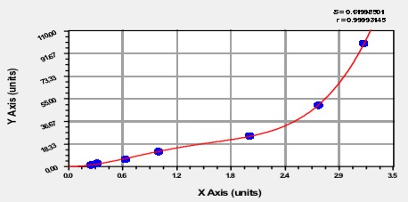 ng/ml OD1 OD2 Average Corrected 100 2.921 2.985 2.953 2.767 50 2.356 2.378 2.367 2.181 25 1.826 1.875 1.851 1.665 12.5 1.221 1.256 1.239 1.053 6.25 0.796 0.800 0.798 0.612 3.12 0.512 0.546 0.529 0.343 1.56 0.302 0.326 0.314 0.128 0 0.188 0.184 0.186 -
