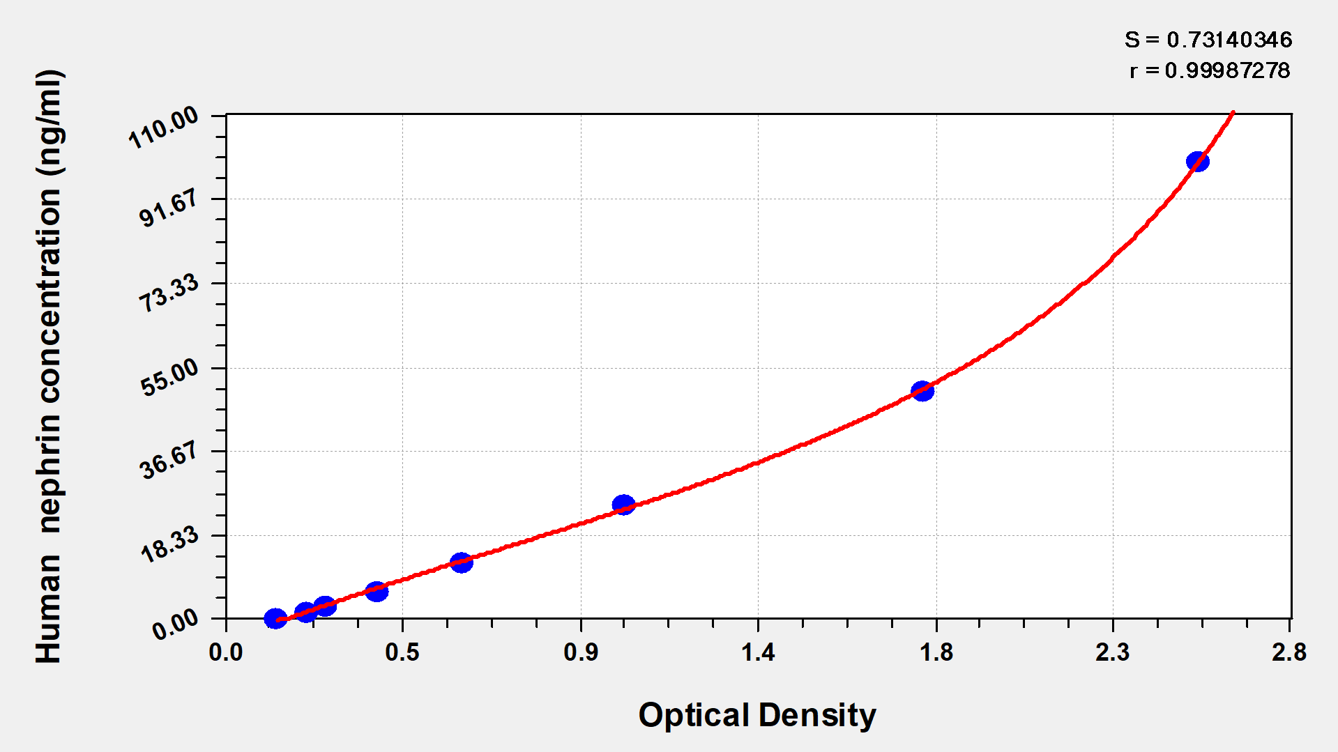 To assess the linearity of the assay, samples were spiked with high concentrations of human nephrin in various matrices and diluted with the Sample Diluent to produce samples with values within the dynamic range of the assay.