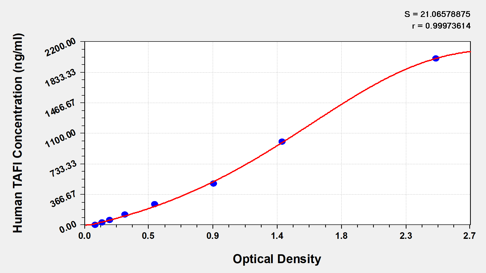 To assess the linearity of the assay, samples were spiked with high concentrations of human TAFI in various matrices and diluted with the Sample Diluent to produce samples with values within the dynamic range of the assay.