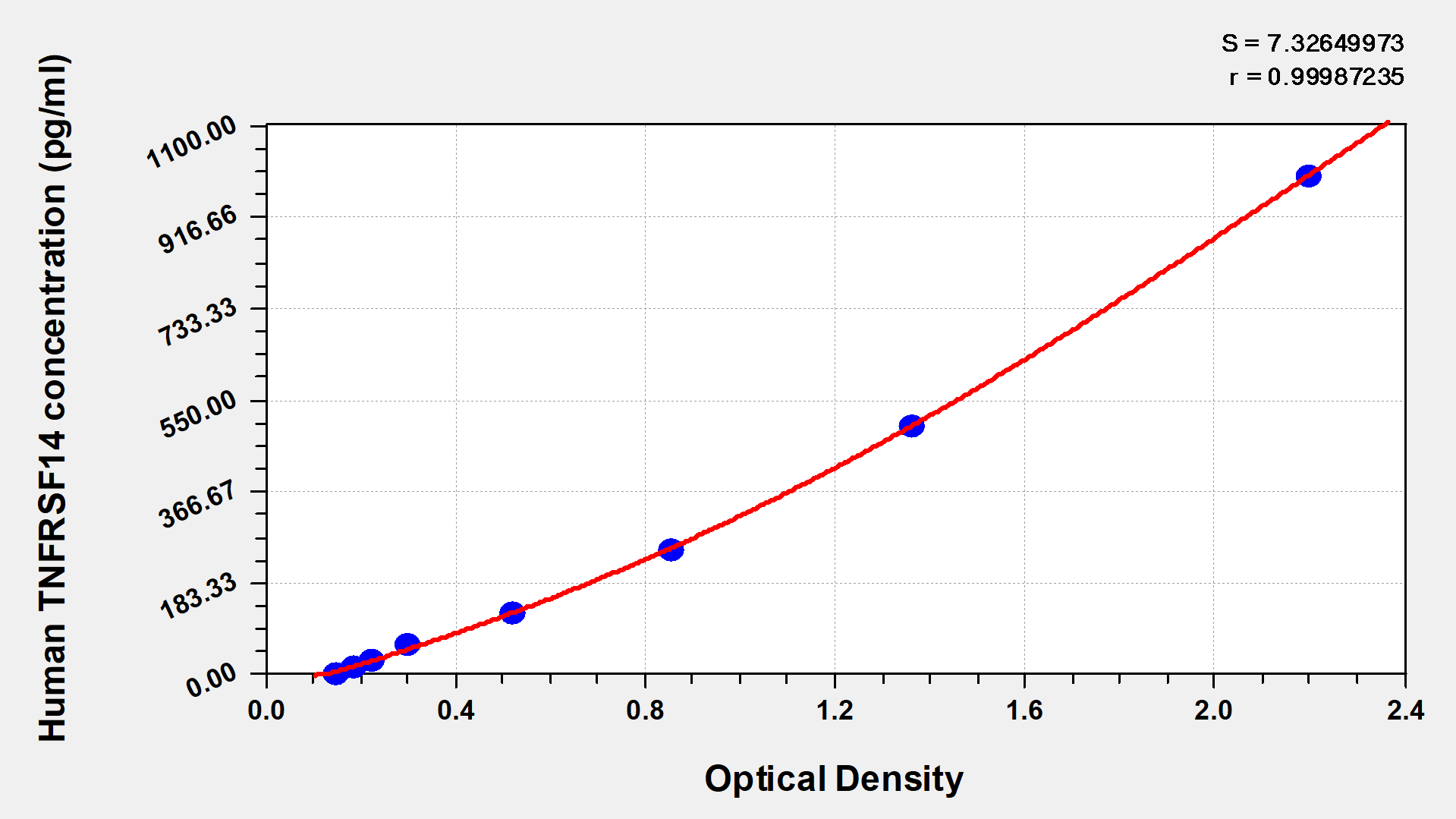 產品評價: 我用CSB-EL023973HU對人血清TNFRSF14進行檢測,分為疾病組和對照組,檢測結果標準曲線OD值分別為0.1936,0.2946,0.3967,0.5522,0.9589,1.7348,2.7152,3.7409分別對應標準樣品濃度為0,15.6,31.2,62.5,125,250,500,1000 樣本OD值范圍是1.023-3.7484 按照這個稀釋倍數最大可以測得3000pg/ml的濃度,最小大約500pg/ml