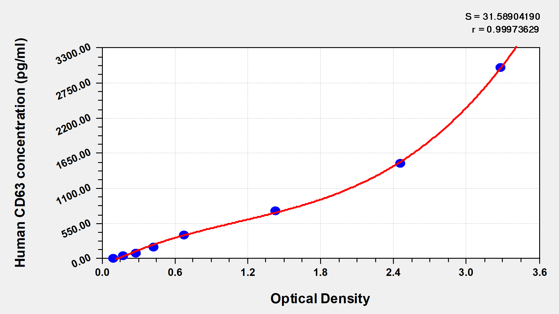To assess the linearity of the assay, samples were spiked with high concentrations of human CD63 in various matrices and diluted with the Sample Diluent to produce samples with values within the dynamic range of the assay.