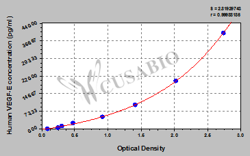 To assess the linearity of the assay, samples were spiked with high concentrations of human VEGF-E in various matrices and diluted with the Sample Diluent to produce samples with values within the dynamic range of the assay. Sample Serum(n=4) 1:1 Average % 85 Range % 80-90 1:2 Average % 96 Range % 90-100 1:4 Average % 98 Range % 91-105 1:8 Average % 90 Range % 82-98 -