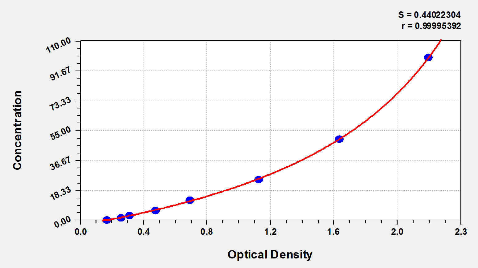 ng/ml OD1 OD2 Average Corrected 100 2.153 2.141 2.147 1.971 50 1.542 1.596 1.569 1.393 25 1.117 1.104 1.111 0.935 12.5 0.703 0.688 0.696 0.520 6.25 0.489 0.474 0.482 0.306 3.12 0.322 0.318 0.320 0.144 1.56 0.259 0.266 0.263 0.087 0 0.172 0.180 0.176 -