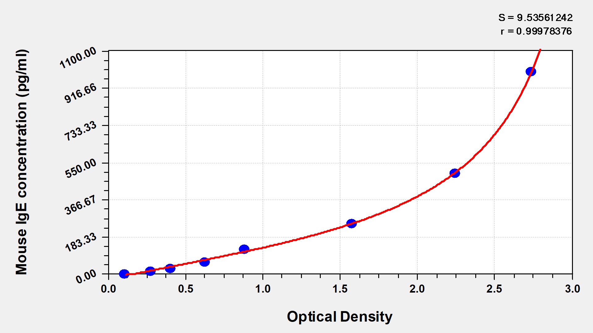 To assess the linearity of the assay, samples were spiked with high concentrations of mouse IgE in various matrices and diluted with the Sample Diluent to produce samples with values within the dynamic range of the assay.