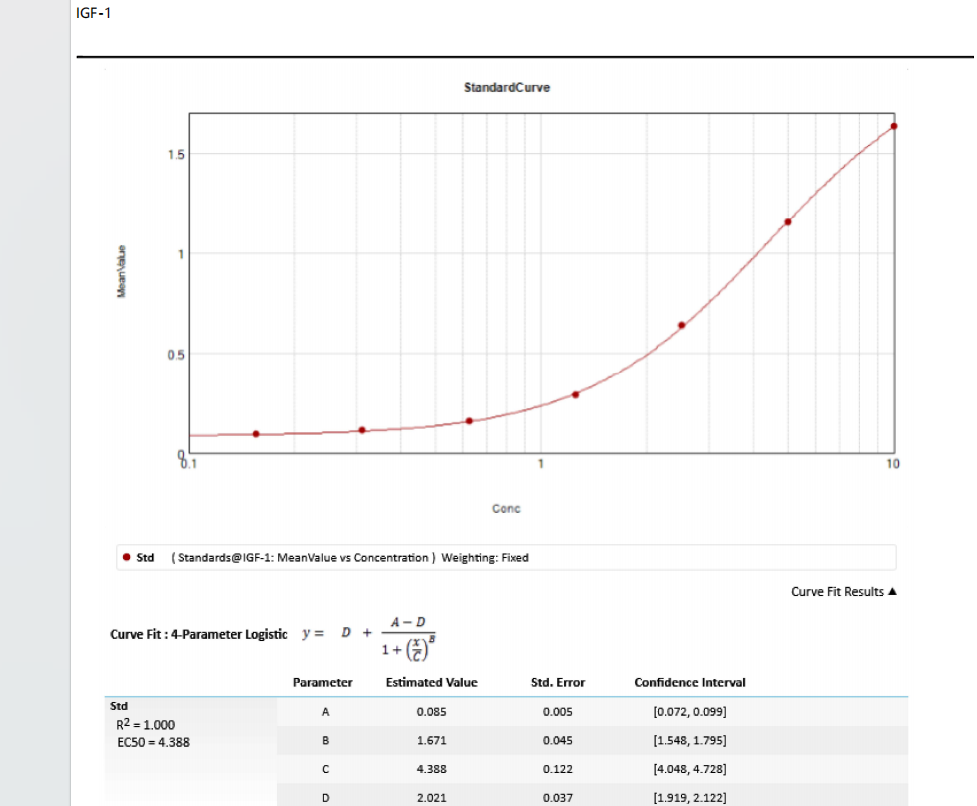 To assess the linearity of the assay, samples were spiked with high concentrations of mouse IGF-1 in various matrices and diluted with the Sample Diluent to produce samples with values within the dynamic range of the assay.
