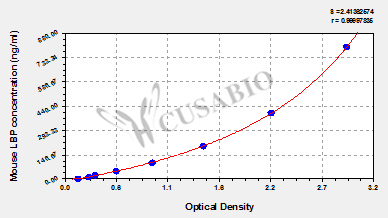 To assess the linearity of the assay, samples were spiked with high concentrations of mouse LBP in various matrices and diluted with the Sample Diluent to produce samples with values within the dynamic range of the assay. Sample Serum(n=4) 1:1 Average % 87 Range % 82-92 1:2 Average % 102 Range % 97-107 1:4 Average % 98 Range % 94-101 1:8 Average % 93 Range % 90-96 -