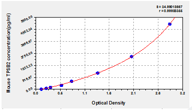 To assess the linearity of the assay, samples were spiked with high concentrations of mouse TPSB2 in various matrices and diluted with the Sample Diluent to produce samples with values within the dynamic range of the assay.