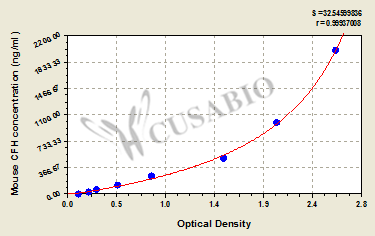 To assess the linearity of the assay, samples were spiked with high concentrations of mouse CFH in various matrices and diluted with the Sample Diluent to produce samples with values within the dynamic range of the assay. Sample Serum(n=4) 1:1000 Average % 92 Range % 88-95 1:2000 Average % 98 Range % 93-101 1:4000 Average % 87 Range % 84-90 1:8000 Average % 98 Range % 92-102 -