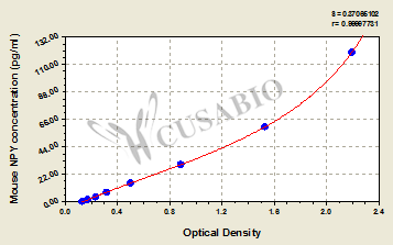 To assess the linearity of the assay, samples were spiked with high concentrations of mouse NPY in various matrices and diluted with the Sample Diluent to produce samples with values within the dynamic range of the assay. Sample Serum(n=4) 1:1 Average % 91 Range % 84-96 1:2 Average % 94 Range % 89-98 1:4 Average % 95 Range % 91-99 1:8 Average % 92 Range % 89-96 -