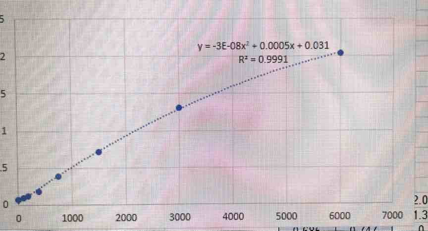 ng/ml OD1 OD2 Average Corrected 6000 2.111 2.228 2.170 2.003 3000 1.365 1.455 1.410 1.243 1500 0.845 0.868 0.857 0.690 750 0.555 0.574 0.565 0.398 375 0.369 0.349 0.359 0.192 187.5 0.282 0.263 0.273 0.106 93.75 0.235 0.230 0.233 0.066 0 0.170 0.163 0.167 -