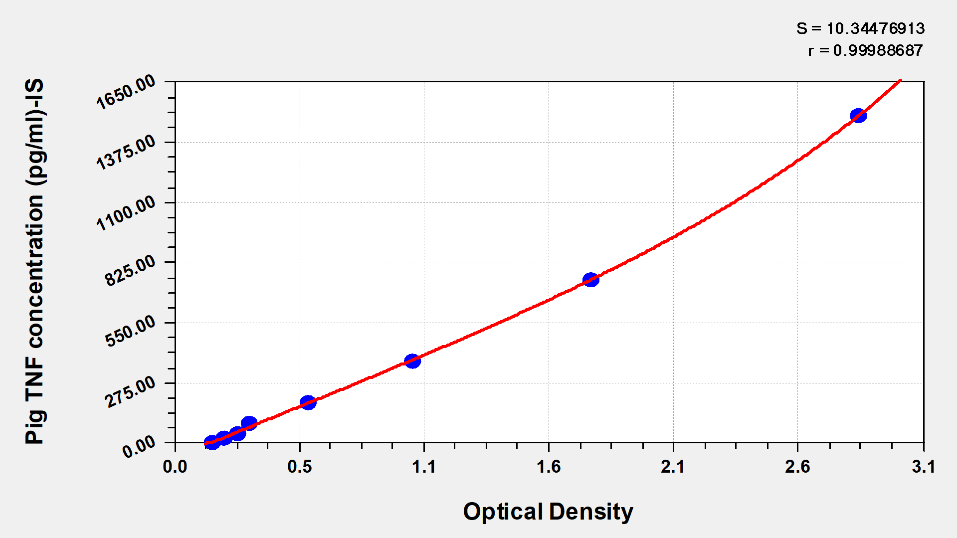 To assess the linearity of the assay, samples were spiked with high concentrations of pig TNF in various matrices and diluted with the Sample Diluent to produce samples with values within the dynamic range of the assay.