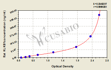 To assess the linearity of the assay, samples were spiked with high concentrations of rat KLKB1 in various matrices and diluted with the Sample Diluent to produce samples with values within the dynamic range of the assay. Sample Serum(n=4) 1:200 Average % 91 Range % 86-95 1:400 Average % 103 Range % 99-105 1:800 Average % 91 Range % 85-97 1:1600 Average % 96 Range % 91-99 -
