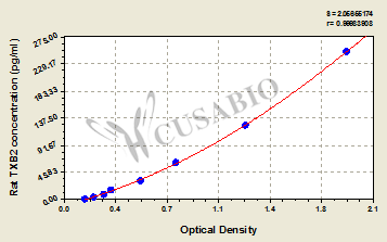 To assess the linearity of the assay, samples were spiked with high concentrations of rat TXB2 in various matrices and diluted with the Sample Diluent to produce samples with values within the dynamic range of the assay. Sample Serum(n=4) 1:1 Average % 94 Range % 88-98 1:2 Average % 95 Range % 91-102 1:4 Average % 99 Range % 94-106 1:8 Average % 93 Range % 87-97 -