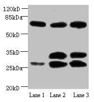 Predicted band size: 30, 35, 72, 80 kDa