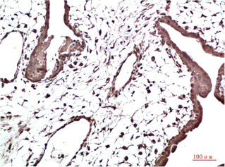 Immunohistochemical analysis of paraffin-embedded Human Placenta Tissue using HP-1γ Mouse mAb diluted at 1:200