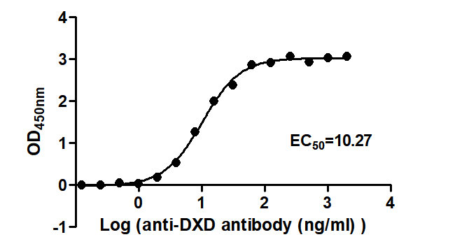 Activity: Measured by its binding ability in a functional ELISA. Immobilized ADC-2(DXD) at 2 μg/mL can bind Anti-DXD-HRP antibody, the EC50 is 10.19 to 11.82 ng/mL. -