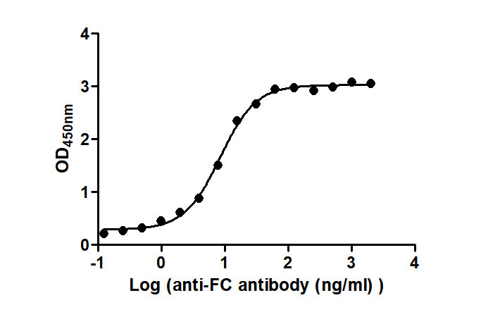 Activity: Measured by its binding ability in a functional ELISA. Immobilized hIgG1 at 2 μg/mL can bind Anti-FC antibody, the EC50 is 7.604 to 9.415 ng/mL.