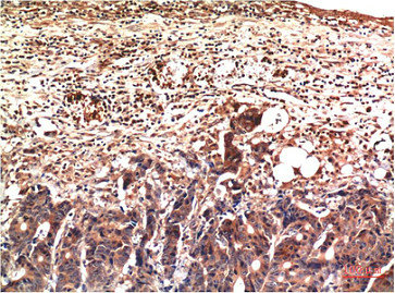 Immunohistochemical analysis of paraffin-embedded Human Stomach Carcinoma Tissue using Ubiquitin Mouse mAb diluted at 1:200.