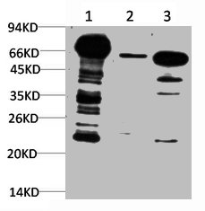Western blot analysis of 1) Hela Cell Lysate, 2) 3T3 Cell Lysate, 3) Rat Brain Tissue Lysate using Ubiquitin Mouse mAb diluted at 1:1000.