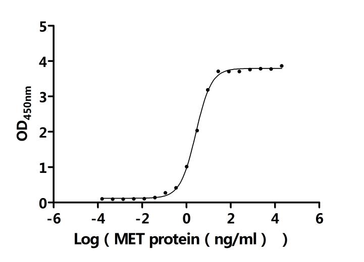 Measured by its binding ability in a functional ELISA.Immobilized Bovine HGF at 2 μg/ml can bind Human MET (CSB-MP012376MO1d9). The EC50 is 2.471-2.843 ng/mL. Biological Activity Assay -