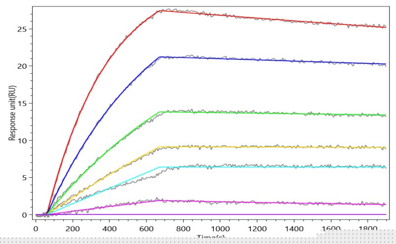 ④Recombinant Human MET (CSB-MP012376MO1d9) captured on Protein A Chip can bind Recombinant Bovine HGF with an affinity constant of 0.643 nM as detected by MetaSPR Assay (WeSPRTM 200). -