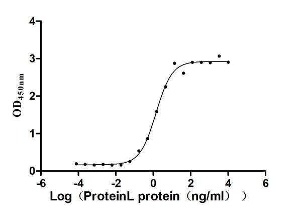 生物活性:Measured by its binding ability in a functional ELISA. Immobilized anti-protein L antibody (CSB-RA006163MA1HU) at 2 μg/mL can bind Biotinylated Protein L. The EC50 is 1.123-1.761 ng/mL.