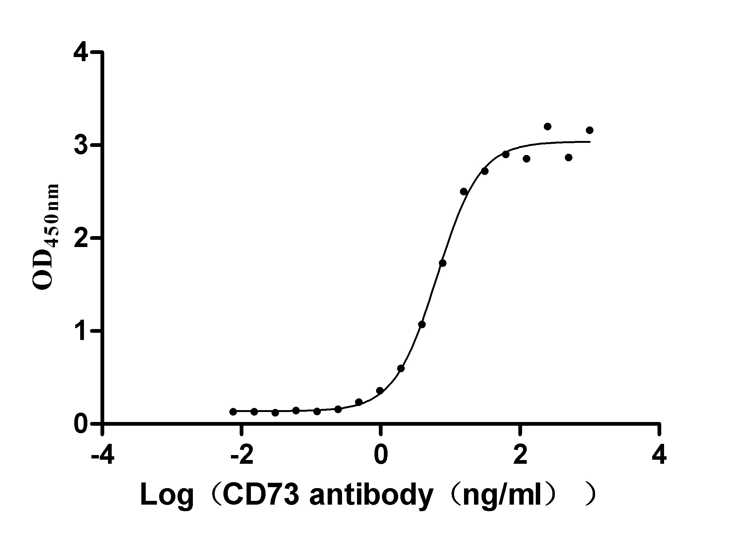 Measured by its binding ability in a functional ELISA. Immobilized CD73 at 2 μg/ml can bind Anti- CD73 Rabbit Monoclonal Antibody(CSB-RA978310A0HU), the EC50 is 3.212-4.525 ng/ml. Biological Activity Assay