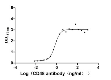 Measured by its binding ability in a functional ELISA. Immobilized CD48 at 2 μg/ml can bind Anti-CD48 rabbit monoclonal antibody, the EC50 of human CD48 protein is 0.5806-0.8463 ng/ml. Biological Activity Assay -