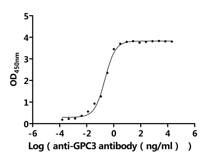 Measured by its binding ability in a functional ELISA. Immobilized Human GPC3 at 2 μg/ml can bind Anti-GPC3 recombinant antibody (CSB-RA009705A1HU). The EC50 is 0.2007-0.2567 ng/mL. Biological Activity Assay -