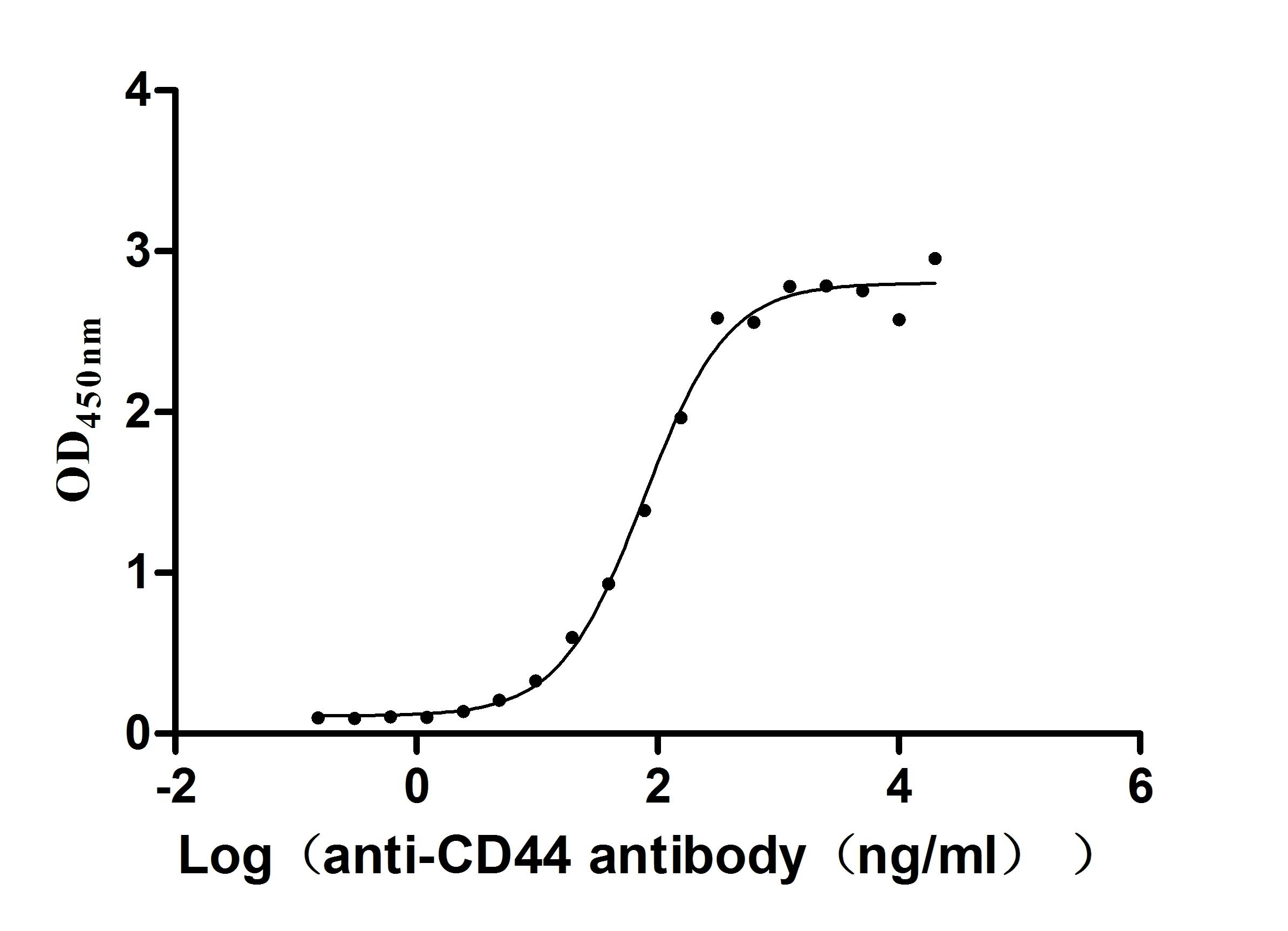 Measured by its binding ability in a functional ELISA. Immobilized Macaca fascicularis CD44 at 2 μg/ml can bind Anti-CD44 monoclonal antibody (CSB-MA004938A0m), the EC50 is 64.18-90.91 ng/mL. Biological Activity Assay