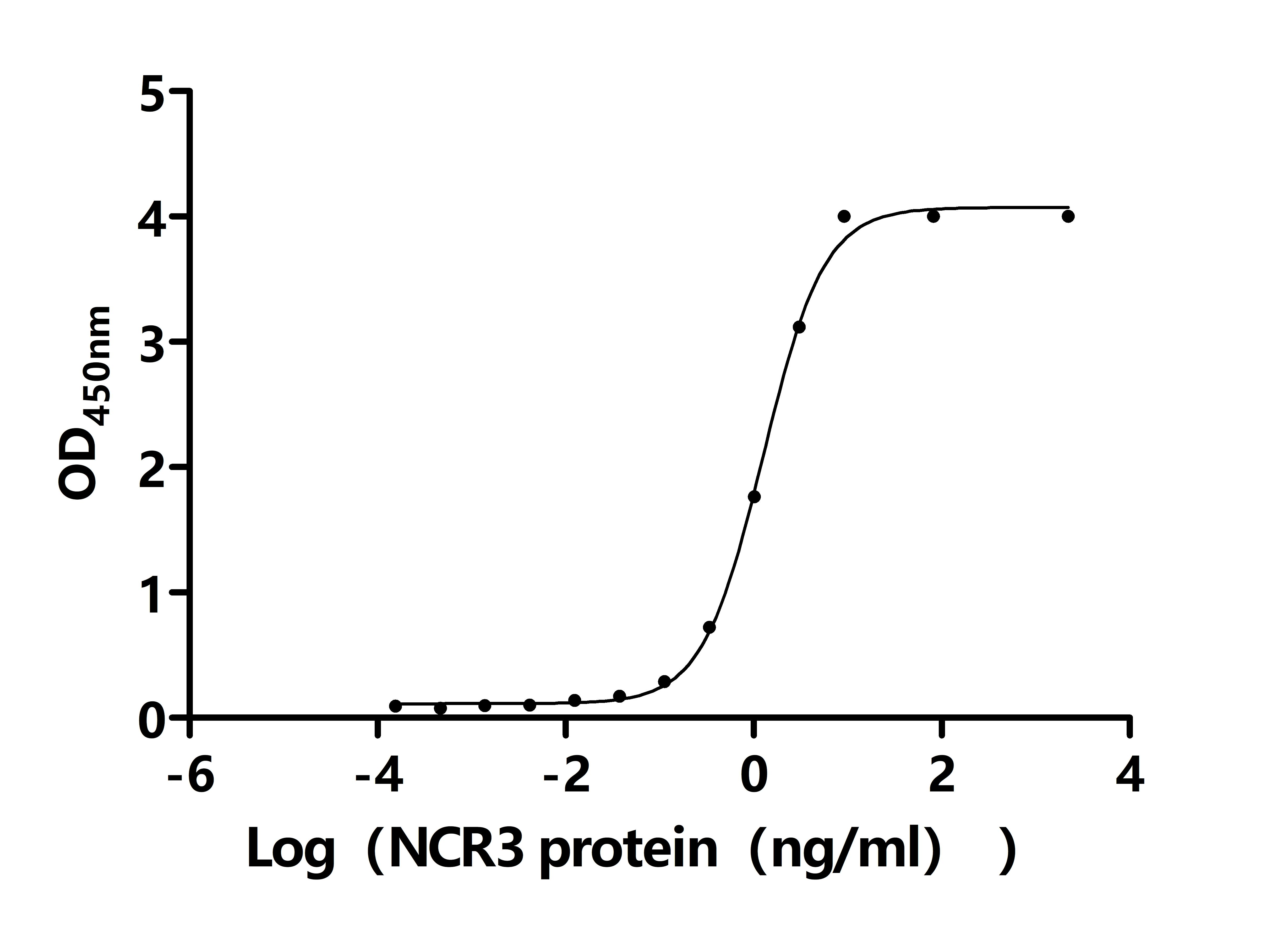 Measured by its binding ability in a functional ELISA. Immobilized Macaca fascicularis NCR3LG1(CSB-MP4942MOV) at 5 μg/ml on an Nickel Coated plate can bind Macaca fascicularis NCR3. The EC50 is 1.171-1.377 ng/mL. Biological Activity Assay