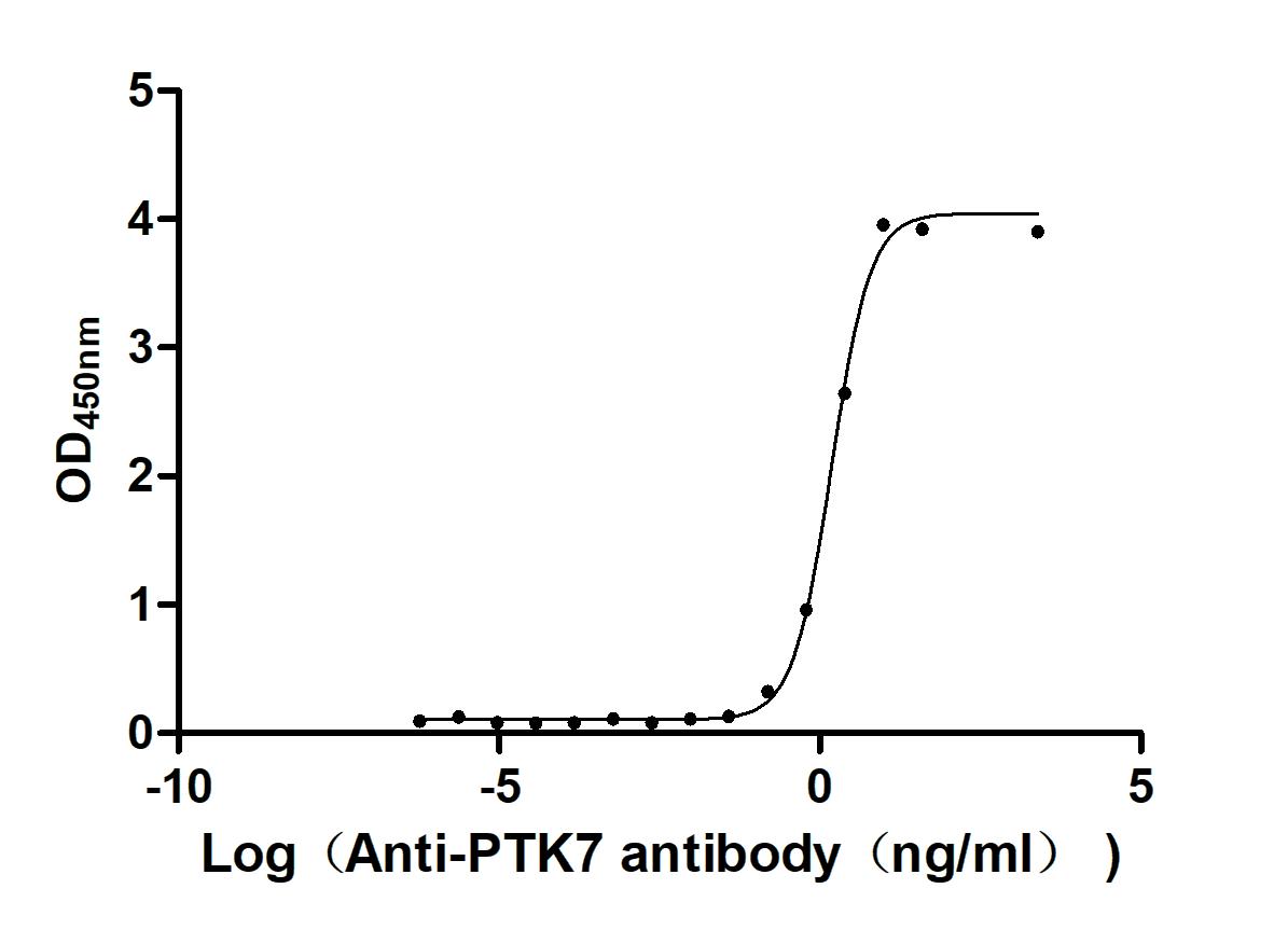 Measured by its binding ability in a functional ELISA. Immobilized Macaca fascicularis PTK7 at 2 μg/ml can bind Anti-PTK7 recombinant antibody (CSB-RA622651MA1HU). The EC50 is 1.399 - 1.666 ng/mL. Biological Activity Assay -