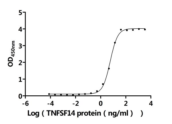 Measured by its binding ability in a functional ELISA. Immobilized Mouse Ltbr at 2 μg/ml can bind Biotinylated human TNFSF14 (CSB-MP023991HUj7-B). The EC50 is 5.428-6.174 ng/mL. Biological Activity Assay -