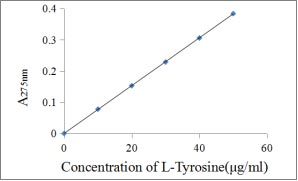 Using the absorbance A275 as the vertical axis and different concentrations of tyrosine as the horizontal axis, a standard curve was drawn, and the enzyme activity was calculated >30U/mg. Unit definition:One unit is defined as the amount of enzyme that catalyzes the formation of 1 umol of tyrosine per minute at pH 7.5 at 37°C