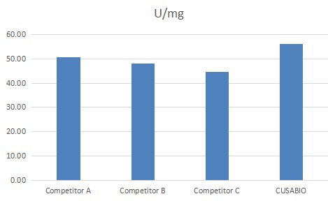 CUSABIO performed a Proteinase K activity comparison test. As the left chart shows, the activity of CUSABIO Proteinase K is better than that of the 3 vendors under the same testing conditions.