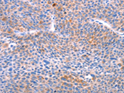 The image on the left is immunohistochemistry of paraffin-embedded Human colon cancer tissue using CSB-PA928876(AADAC Antibody) at dilution 1/30, on the right is treated with fusion protein. (Original magnification: ×200)