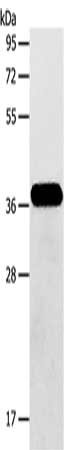 Gel: 10%SDS-PAGE, Lysate: 40 μg, Lane: Human fetal brain tissue, Primary antibody: CSB-PA919003(AASDHPPT Antibody) at dilution 1/600, Secondary antibody: Goat anti rabbit IgG at 1/8000 dilution, Exposure time: 30 seconds