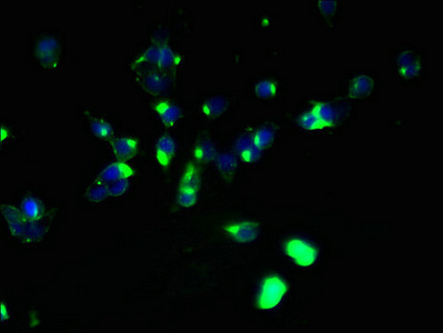 Immunofluorescent analysis of 293T cells using CSB-PA001094LA01HU at dilution of 1:100 and Alexa Fluor 488-congugated AffiniPure Goat Anti-Rabbit IgG(H+L)