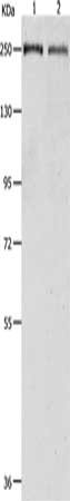 Gel: 8%SDS-PAGE, Lysate: 40 μg, Lane 1-2: K562 cells, 231 cells, Primary antibody: CSB-PA964463(ACIN1 Antibody) at dilution 1/500, Secondary antibody: Goat anti rabbit IgG at 1/8000 dilution, Exposure time: 10 seconds