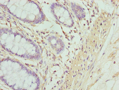 Immunohistochemistry of paraffin-embedded human colon tissue using CSB-PA12799A0Rb at dilution of 1:100