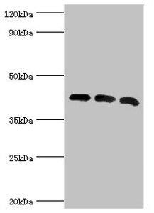Predicted band size: 43 kDa