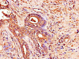 Immunohistochemistry of paraffin-embedded human prostate cancer using CSB-PA001275LA01HU at dilution of 1:100