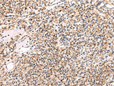 The image on the left is immunohistochemistry of paraffin-embedded Human prostate cancer tissue using CSB-PA901585(ADAMTS1 Antibody) at dilution 1/30, on the right is treated with synthetic peptide. (Original magnification: ×200)