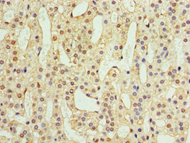 Immunohistochemistry of paraffin-embedded human adrenal gland tissue using CSB-PA001322DSR2HU at dilution of 1:100
