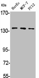 • Western Blot analysis of HuvEc MCF7 PC12 cells using A Cyclase V/VI Polyclonal Antibody